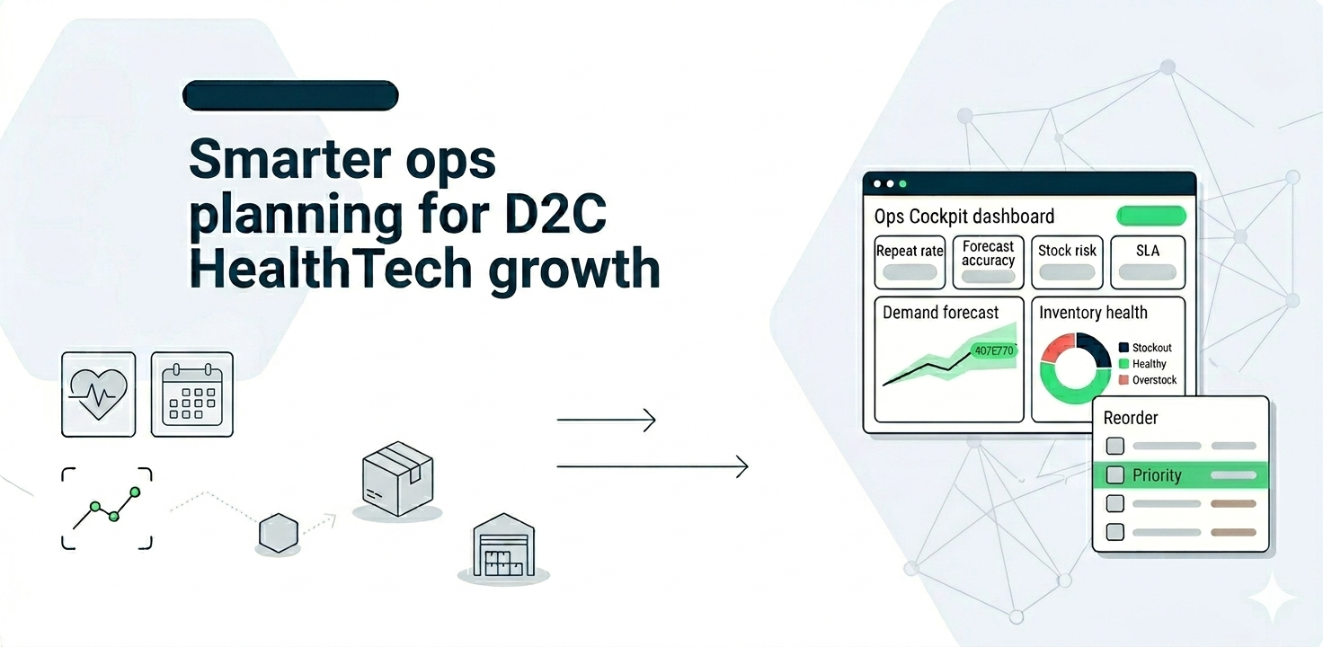 In D2C HealthTech, operational mistakes show up as churn and cash burn: stockouts break trust, overstock locks capital, and fulfillment capacity issues degrade experience. We built an operations intelligence system that connected customer retention signals with demand forecasting, inventory planning, and warehouse capacity modeling—and added AI layers for churn prediction, forecast automation, and replenishment optimization so the brand could scale predictably.